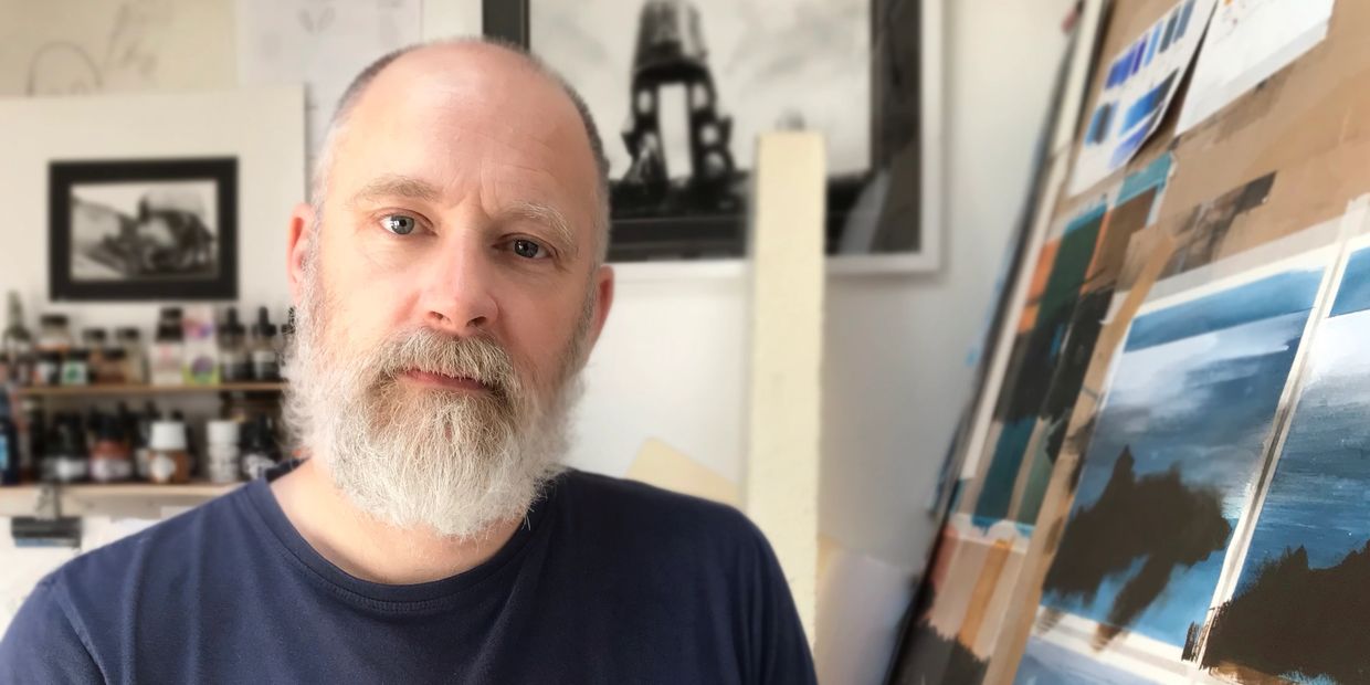 Steven has worked as a full time artist since Easter 2019. Before this he had split his time between his own art and teaching. He trained as an animator at The Surrey Institute of Art and he then worked in children’s television until the birth of his first child in 2003.