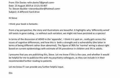 In my proposal I had explained that first and foremost I wanted the book to be a good read and I am satisfied that the story of One and his defeat of Dr Doom is a well-constructed and engaging narrative. I have collected feedback from a broad cross section of audience ranging from 6 to 75 and whilst the very youngest and oldest found the lack of an explicit explanation from narration challenging, the feedback from the range 9 to 48 was largely positive and the understanding good. Its conventional 3 act structure (meet One/the mission/the demise of Doom) contains sufficient plot points and a twist to entertain and its popular culture references are amusing for older readers. However, in its current form it does not yet fully fulfil my aim of providing information about ADHD. The ‘complaints’ One is confronted with on page 25 are essentially the common ADHD traits I want to address but at the moment the book only highlights them. It does not achieve its stated goal of addressing and breaking down misconceptions associated with these traits. I have been corresponding with Dr Elin Davies, a psychiatrist, and this is something I intend to work on through the creation of an epilogue that addresses them more directly. That said ADHD is intended to be an important thread woven into the ‘rope’ of the story but it is not a story specifically about ADHD and not aimed at a narrow audience of those with it. By appealing to as wide as an audience as possible it can mediate its message to those that, it could be argued, really need it; namely the 96% without it and who don’t understand it.