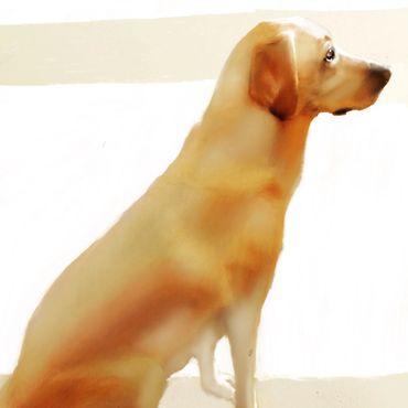 "Being fans of Steven’s landscape work we asked him to paint our dog Melda because we wanted a pet portrait that wasn’t overly sentimentalised. Melda is getting on in years and the painting will be a wonderful memory of her. The painting beautifully reflects Melda’s personality and we treasure it."